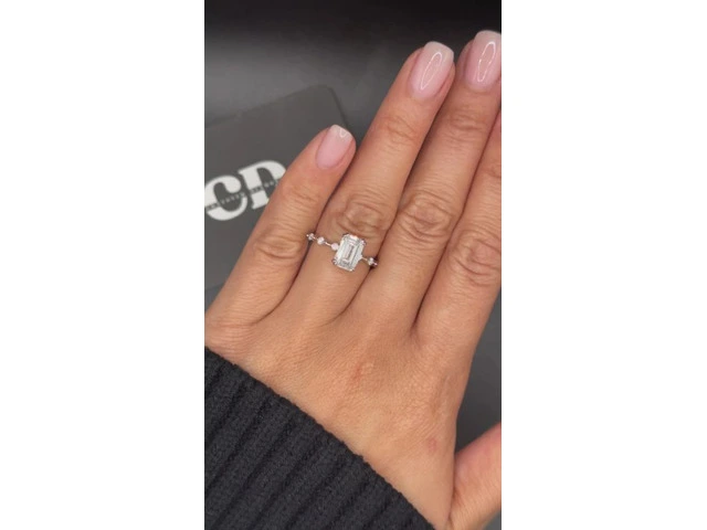 2 Carat White Gold Diamond Ring – Emerald Accent Dot-Dash Side Stone in Albany, Western Australia