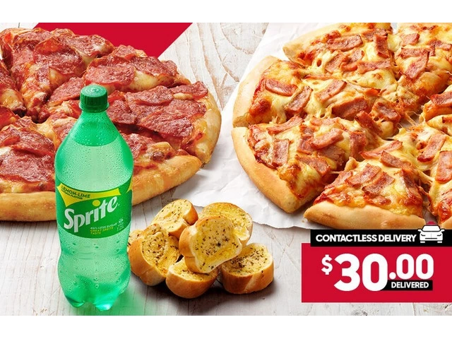 2 Large Pizzas + 2 Sides for $30 DELIVERED.