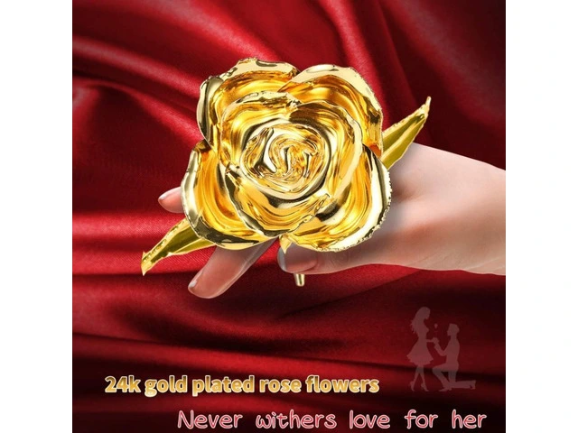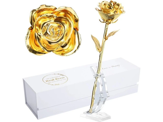 [24k Gold Dipped] Fresh real rose been coated by resin then gold plated to avoid withering and last eternal,The stem is completely covered with 24K gold, the edges of leaves and petals are also dipped with 24K gold
