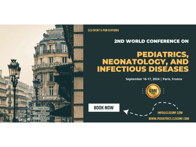 Join us at the 2nd World Conference on Pediatrics, Neonatology, and Infectious Diseases, a hybrid event offering both in-person and remote participation options. Held in the vibrant city of Paris, France, on September 16-17, 2024, this conference explores the theme "Advancing Pediatrics: Innovations in Treatment and Research for a Healthier Future." Early bird registrants for either virtual or in-person attendance receive a complimentary publication and 2 nights of accommodation. Speakers and in-person attendees additionally enjoy 2 complimentary nights. Don't miss this opportunity to engage in cutting-edge discussions and networking opportunities. Visit www.pediatrics.clsconf.com for more details and registration.