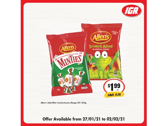 Allen's Jelly/Mint Confectuonery Range 150-200g at IGA Ravenswood Supermarket