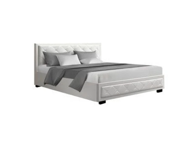 Artiss Bed Frame King Size Gas Lift Base With Storage White Leather Tiyo Collection in Brisbane, Queensland