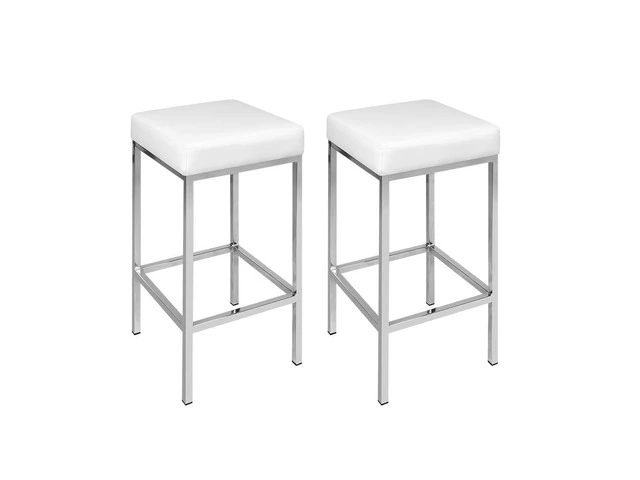 Artiss Set of 2 PU Leather Backless Bar Stools – White and Chrome in Brisbane, Queensland