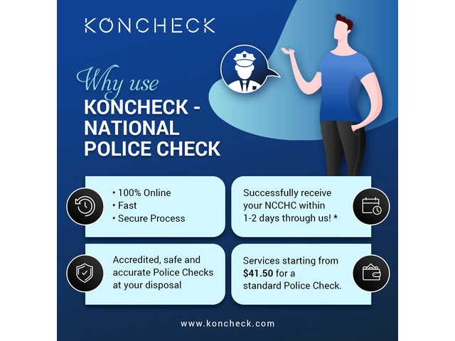 KONCHECK is an accredited provider of the Australian Criminal Intelligence Commission (ACIC) and provides 100% online National Crime Check service. It is a smarter and faster way to obtain the check. Most Police Clearance Certificate is released within 1-2 business days. A Police Check makes you employment-ready. So, do not hesitate to have one before applying for a job.