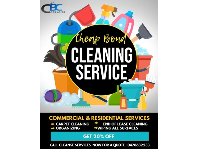 Bond Cleaning Adelaide provides the best quality cleaning service. If you want great cleaning service then definitely hire a cheap bond Adelaide offers a 100% cleaning facility to your customers. You can't find better service at 20% off. It cleans so deeply, cleans so well that Everyone is attracted to them and does this cleaning with full method and a whole heart and tries to satisfy the customer in every way, it is not only cleaning, it also takes care of your happiness, your satisfaction is theirs. priority and it cleans keeping in mind its priority.