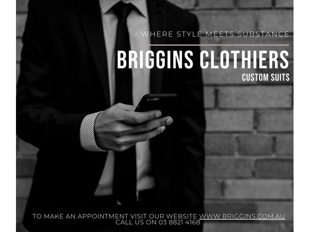 If you looking for a custom-tailored suit in Melbourne? oh, don't worry! Briggins is one of the best custom-tailored suit shops in Melbourne. W providing affordable tailored outfits and accessories for men and women in Melbourne at the lowest price. For more details call us at 1300 452 251. Book a free consultation for tailored suits today!