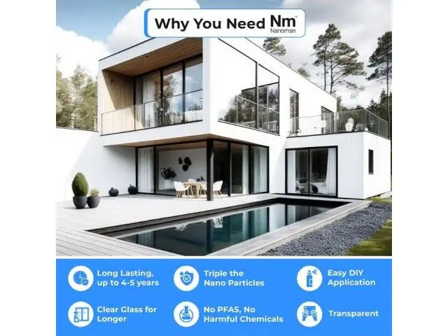 By preventing dirt, limescale, salt, chlorine, and other contaminants from adhering to the surface, Nanoman Glass Coating helps stop staining and etching—common issues that can leave glass looking dull or damaged over time. Because these contaminants can also degrade glass, using Nanoman significantly reduces the likelihood of needing costly restoration or replacement. Your glass panels will stay in excellent condition for years.