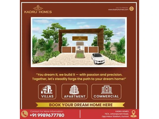 Book affordable luxury villas in Kurnool with Kadru Homes and experience elegant living like never before. Our villas are thoughtfully designed with modern architecture, spacious interiors, and advanced amenities. Whether you're buying your first home or upgrading, Kadru Homes provides you with premium living at affordable prices in prime locations.