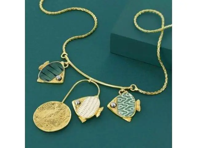 Layered necklaces, brooches, and bangles