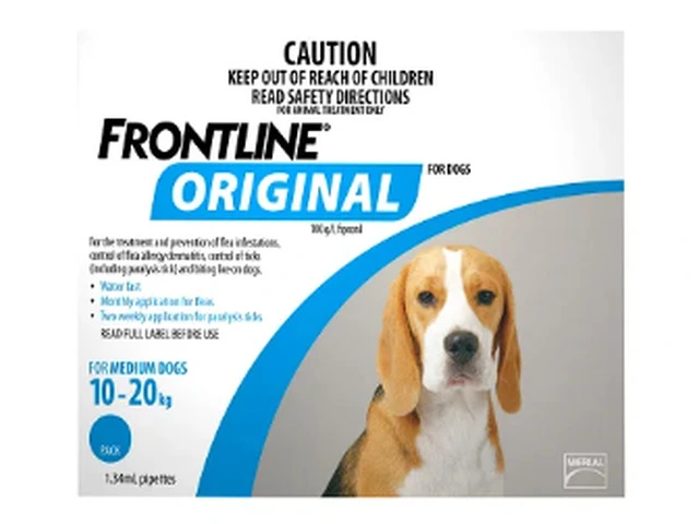 Frontline Original Flea Control for Dogs is the reliable solution for safeguarding your furry friend against fleas, ticks, and lice. This user-friendly spot-on treatment is specifically formulated for the treatment and prevention of flea infestations, control of flea allergy dermatitis, ticks (including paralysis tick), and biting lice on dogs. With an active ingredient, fipronil, this treatment effectively combats flea infestations for one month, control flea allergy dermatitis, and provides protection against paralysis tick infestations for up to 2 weeks. It also controls brown dog ticks on dogs for up to 1 month, treats biting lice, and aids in the control of sarcoptic mange on dogs. Additionally, it is water fast, allowing it to be used on dogs that are shampooed between treatments. Frontline Original flea treatment is safe for use on puppies from 8 weeks of age and in breeding, pregnant, and lactating dogs. This comprehensive protection ensures the well-being of your canine companion, providing peace of mind for pet parents.