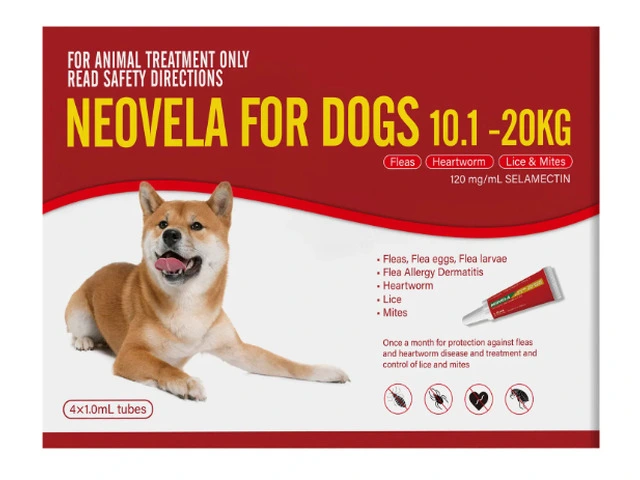 Neovela Red For 10-20kg dogs treats biting lice and sucking lice in 6 weeks and older puppies and dogs."