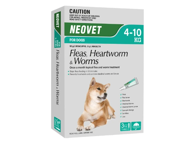 "Neovet For Medium Dogs is a broad-spectrum topical treatment for dogs. This monthly spot-on formula is indicated for use in 7 weeks and older puppies and dogs, weighing between 4-10 kg.