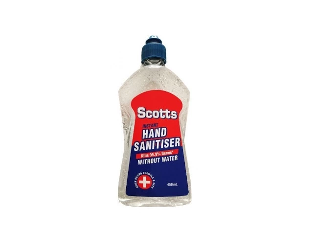 Buy Scotts Hand Sanitiser 450Ml Online from Stenlake. Scotts Hand Sanitiser with 70% Ethyl Alcohol Kills 99.99% Germs and Bacteria. Quick, convenient, leaves no sticky residue, perfect for use in the home office and kids. Call (02) 8305 7300 for Bulk Buy Hand Sanitiser Online.