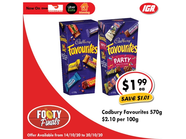 Cadbury Favourites - Grocery Item, IGA Ravenswood in Launceston, Tasmania