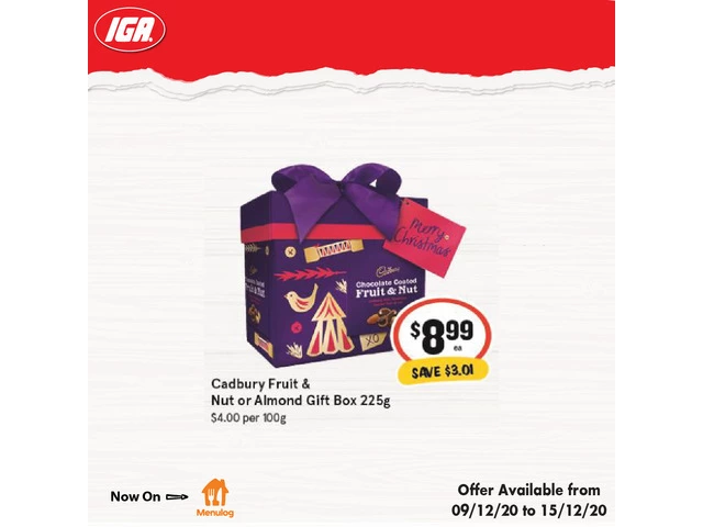 Cadbury Fruit & Nut or Almond Gift Box From IGA Ravenswood in Launceston, Tasmania