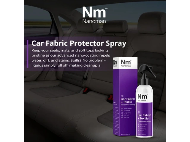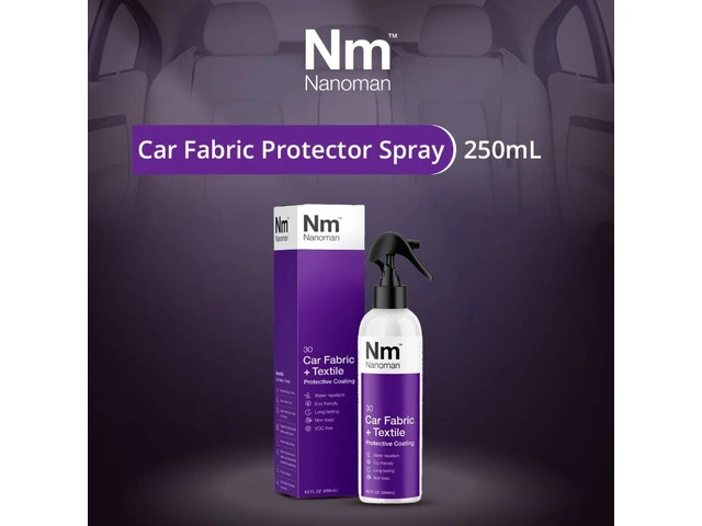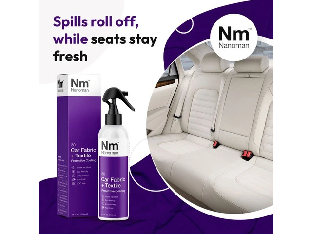 Nanoman Car Fabric Protector Spray is for use on car seats, car mats and soft tops. It protects automotive fabrics and textiles against water, dirt and stains, whilst remaining totally invisible. It will not affect the materials appearance, its ability to breathe, its colour or feel. Nanoman Car Fabric + Textile surrounds every fibre with a matrix network of nanoparticles that are extremely hydrophobic and oleophobic, meaning they repel both liquids and contaminants. Liquid spills will either run off or sit on top of the surface and can be easily shaken off or soaked up using a paper towel or similar. The liquids will not soak into the material, eliminating any potential staining. The nano coating is highly adhesive to fabrics and leather alike and will provide a highly effective layer against water, coffee and other liquid spills for up to 12 months.