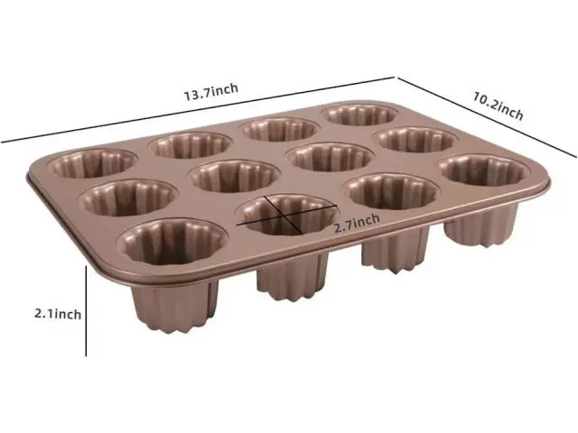 Carbon Steel 12-Cavity Non-Stick Canele Mold Cake Pan, Gold in Sydney, New South Wales