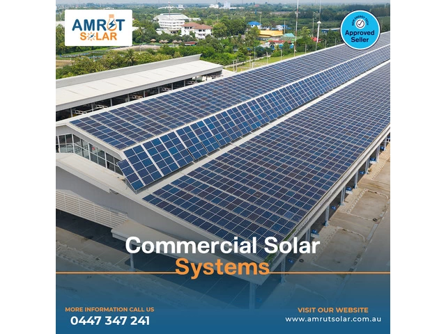 Are you looking for a way to reduce electricity costs? And do you want to run your business without electricity shortages or blackouts? Then, commercial solar system installation with Amrut Solar, a New Energy Tech approved seller in Melbourne, is the best solution. And a step toward making your business eco-friendly. We have top-brand commercial solar systems, including solar panels, batteries, and inverters. We customise commercial solar systems according to your business needs. Call Amrut Solar at 0447 347 241 to book your commercial solar system in Melbourne.