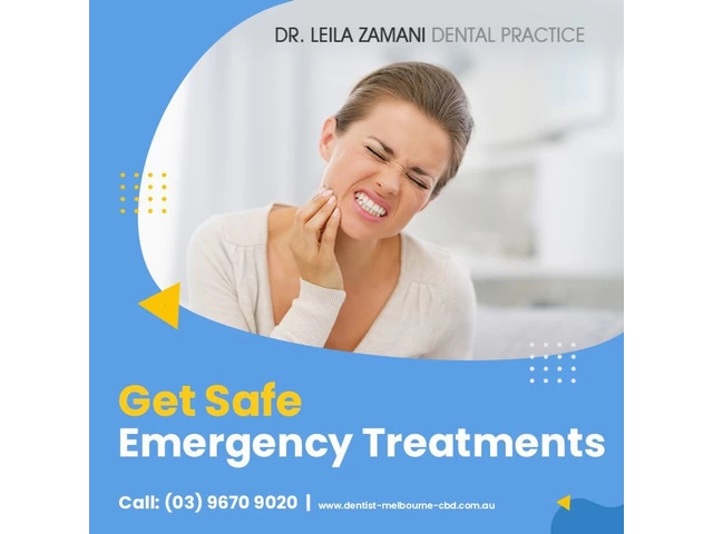 If you want to find the best dentist in Melbourne, look no further than Dr Leila Zamani Dental Practice. We offer a wide range of affordable and high-quality dental treatments that can help improve your smile whether it be for cosmetic purposes or emergency care. When pain has become unbearable, you should book your appointment with our emergency dentist in Melbourne right away. We are the most reliable emergency dental clinic in Melbourne. For more information, please visit our website: https://www.dentist-melbourne-cbd.com.au/emergency-dental-treatment/ or call (03) 9670 9020.