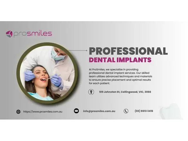 Transform your smile with Dental Implants Melbourne at ProSmiles Dentist Collingwood. Our advanced implant solutions offer a permanent and natural-looking replacement for missing teeth, restoring both function and confidence. Trust our experienced team to deliver personalized care and a flawless smile.