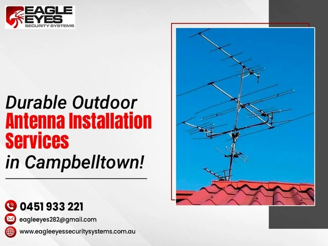 Need reliable Outdoor Antenna Installation in Campbelltown? Trust Eagle Eyes Security System PTY LTD for expert Antenna Mounting & Positioning, Antenna Alignment & Tuning, and Antenna Cable Installation. We guarantee optimal signal strength and crystal-clear reception for your home or business. Serving Campbelltown and nearby areas, our skilled team ensures fast, affordable, and professional service every time.