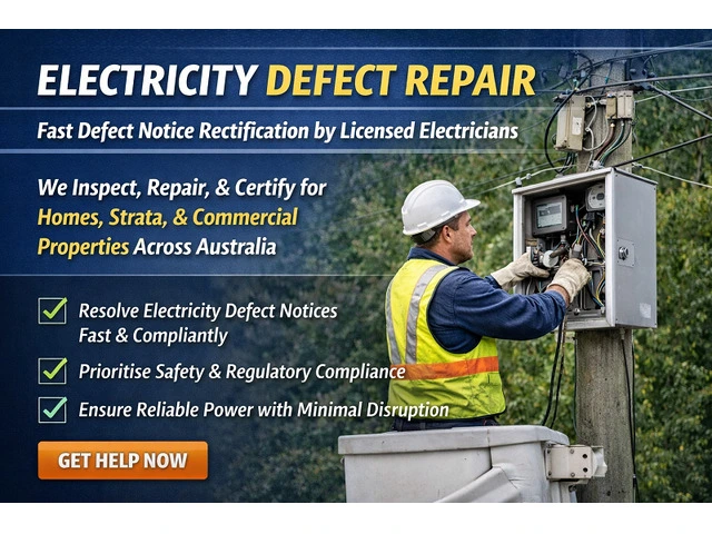 Fast, compliant Electricity Defect Repair services that resolve defect notices with minimal disruption. Our licensed electricians inspect, repair, and certify your system, ensuring safety, regulatory compliance, and reliable power for homes, strata, and commercial properties across Australia every single time.