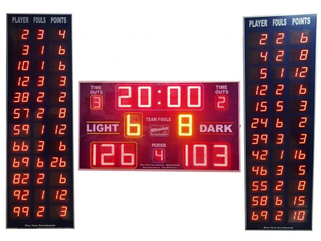 Electronic Scoreboard by Blue Vane uses advanced technology together with its robust design and simple control system to effectively serve all types of sporting events. The digital display system gives real-time game information, which includes scores, game time, periods, fouls, and player statistics. At Blue Vane we support various sports while delivering operational simplicity and dependable performance throughout time. Our website contains additional information about our product.