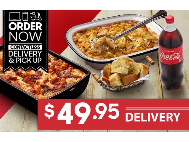 Order delicious Pasta Delivery online with 2 Share Pastas + 2 Sides for $49.95 DELIVERED