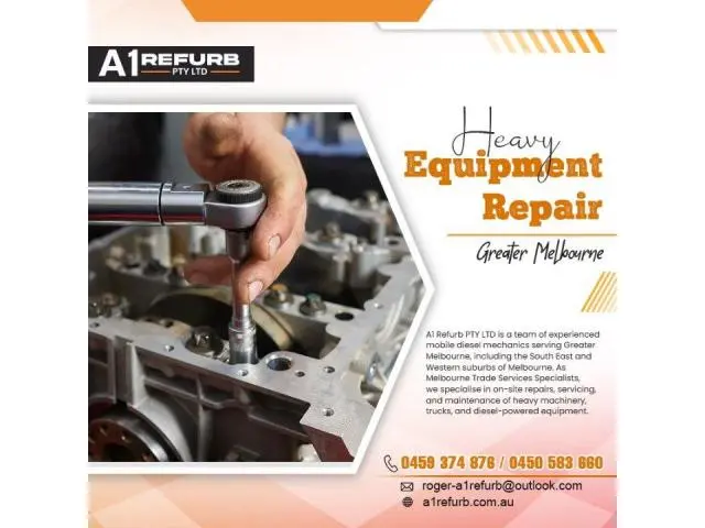 Keep your machinery running at peak performance with A1 Refurb PTY LTD. Our fully equipped mobile diesel mechanics provide on-site repairs, servicing, and diagnostics for construction, mining, agricultural machinery, and trucks—anywhere in Greater Melbourne. No towing, no delays, just fast, professional service from a team with over 40 years’ combined experience.
