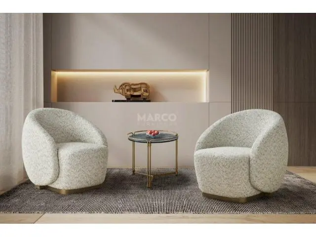 The Fiora Occasional Chair offers inviting comfort with its ivory upholstery and graceful design. This accent chair features a dense padded foam fill and a curved back for added back support. Its high-quality, powder-coated iron base in bronze ensures both durability and stability. With its sophisticated design, this armchair is perfect for living rooms, reading nooks, or cozy corners.