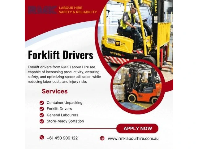 RMK Labour Hire provides an optimal solution for finding Forklift Drivers in Melbourne. Forklift drivers who are safety-conscious and experienced are needed to join our team. If you possess a strong understanding of warehouse operations, loading and unloading goods, and ensuring the safe transportation of materials, we are interested in hearing from you. You will be responsible for operating forklifts to move, stack, and organize inventory in our warehouse as a forklift driver with us. A supportive work environment, competitive compensation, and advancement opportunities are available to our employees. A career opportunity awaits you if you are reliable, hardworking, and ready to contribute to a dynamic team. Join our dedicated team of professionals by applying now.