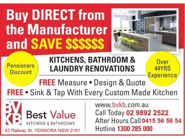 FREE MEASURE & QUOTE - KITCHENS, BATHROOMS, LAUNDRIES and OUTDOOR KITCHENS RENOVATIONS in Sydney, New South Wales