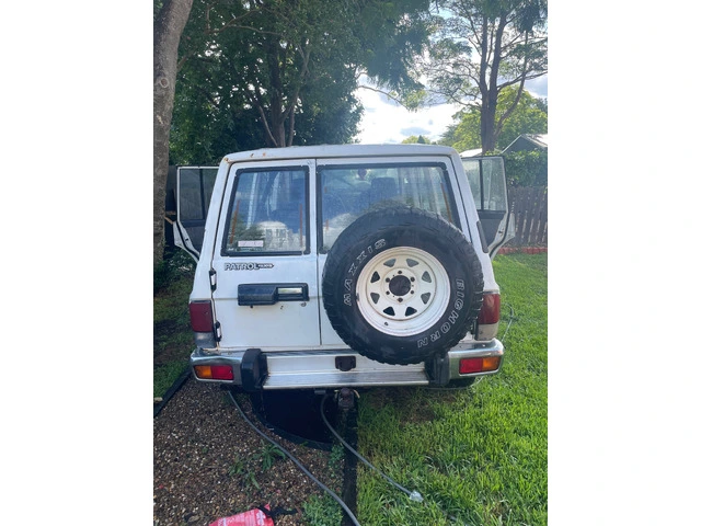 Nissan 91 Gq patrol 3.0l petrol/gas. Owned this machine for 17 years and reluctantly selling. Taken off the rd around 2 years ago to update and replace roof liner but never had the time. Great motor and runs strong. 540k on the clock but motor rebuilt around 200k. Power steering pump needs replacing and new roof liner. Some rust coming up in places since it’s sat there. Got ve commodore seats and conversion kit, new lights, radio and speakers, all the parts I was replacing, most still new and welcome to it all ( last 2pics). I also planned on painting it so also welcome to the raptor paint, primer, spray gun.