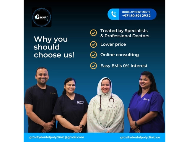 At Gravity Dental Poly Clinic LLC, we are committed to providing top-notch medical and dental care across a range of specialties. Our dedicated team of professionals is here to ensure that you and your family receive the highest quality treatment in a comfortable and welcoming environment. With expertise in dental, orthodontics, oral and maxillofacial surgery, and dental implants, we offer comprehensive services to cater to all your oral health needs.