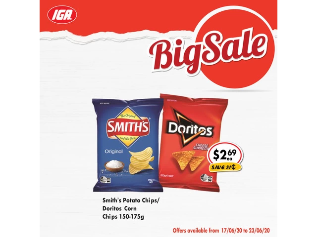 Smith's Potato Chips/Doritos Corn Chips 150-175g