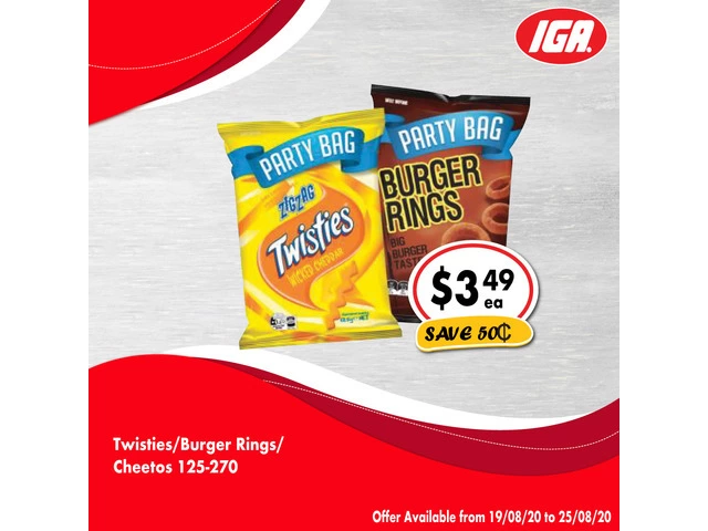 Twisties/Burger Rings/Cheetos 125-270g