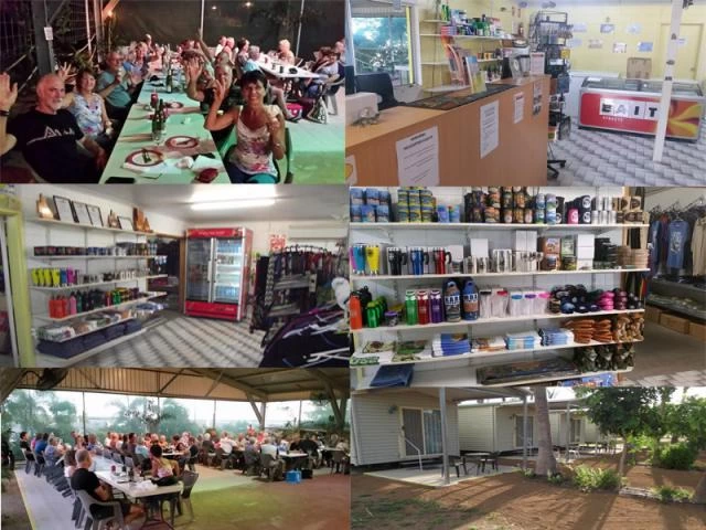 Huge Croc runs amuck on a buying spree in Karumba Point Sunset Caravan Park Shop. Staff slash prices. Book now