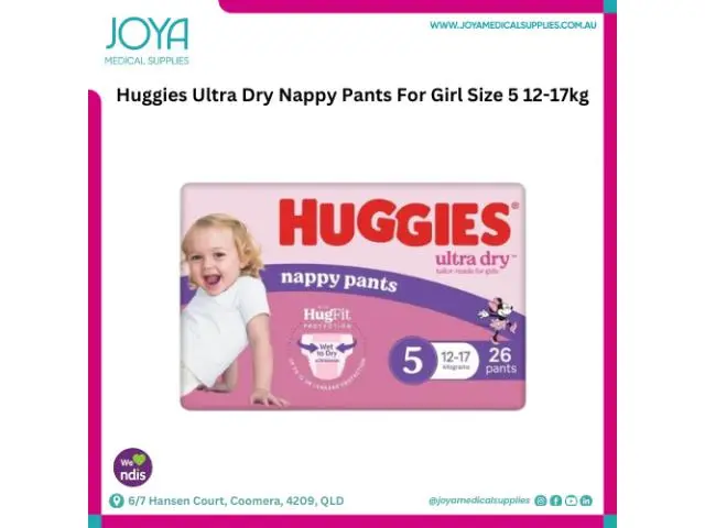 Joya Medical Supplies offers Huggies ultra dry nappy pants for girl size 5 12-17kg in Australia. Huggies ultra dry nappy pants with tailored absorbency that absorbs wetness in under 10 seconds, where they need it most. Shop online today!