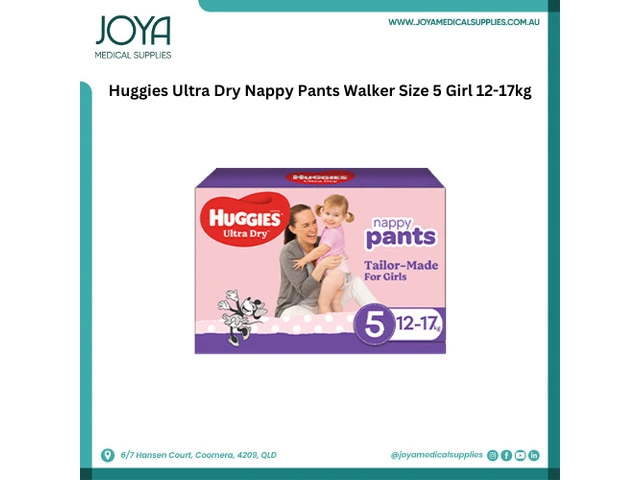 Buy a Huggies ultra dry nappies pants walker size 5 girl 12-17kg in Australia from Joya Medical Supplies. Specifically designed nappy pants for maximum comfort when babies become more active. Enjoy our fast shipping and hassle-free shopping experience today!