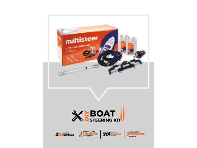 Multisteer offers a Hydraulic Steering System designed for twin outboards, providing high performance and effortless control. Upgrade the boat's steering system now. Multisteer offers the Hydraulic standard installation kit designed for outboard boats equipped with twin engines. This top-quality product provides smooth maneuverability and effortless control, making it an excellent choice for anyone seeking these features. Installing the Hydraulic OH-300-TX kit is easy and can be done by yourself, as it includes all the necessary parts. Once you open and install the kit, your boat will be ready to cover long distances on the water.