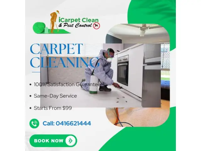 At iCarpet Clean & Pest Control, we provide professional cleaning and pest control services starting from just $99. Our Carpet Cleaning service uses deep-clean technology to remove dirt, stains, and allergens, leaving your carpets fresh and spotless. With our Pest Control solutions, we ensure your home or business is free from unwanted pests using safe and effective methods. Our Upholstery Cleaning service revives your furniture by removing stains, dust, and odors, giving it a renewed look and feel. We also offer Tile & Grout Cleaning to restore the shine of your floors, removing built-up grime and enhancing hygiene.