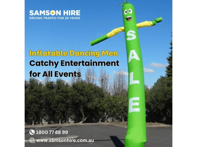 Our inflatable dancing men are ideal for promotions and community events, our inflatable men make marketing fun and effective. Choose Samson Hire for a memorable impact every time!
