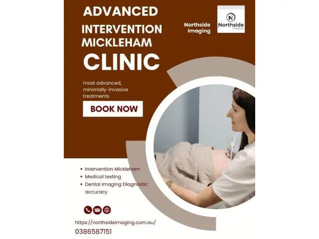 Intervention Imaging Mickleham offers minimally invasive imaging-guided procedures that assist with the management of pain and provide specific treatment. Utilising the latest ultrasound technology as well as CT guidance, interventions can improve the efficiency as well as safety and outcomes, while also reducing the time to recover. The clinic is conveniently situated in Mickleham Patients receive expert medical professionals and the latest imaging technology and a relaxing clinical setting. Referrals from specialists and GPs are accepted, as are timely appointments and prompt delivery of results. Our focus is on accuracy as well as patient care. Efficient imaging support for intervention scheduling.