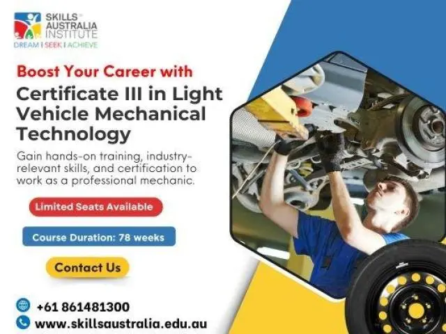 Kickstart your automotive career with the Cert 3 Light Vehicle Mechanic Course. Learn essential skills in diagnostics, servicing, and vehicle repairs to become a certified mechanic. This nationally recognised qualification prepares you for a wide range of roles in the automotive industry. Ideal for those passionate about engines and hands-on work. Begin your journey toward a stable and in-demand profession at a trusted education institute.