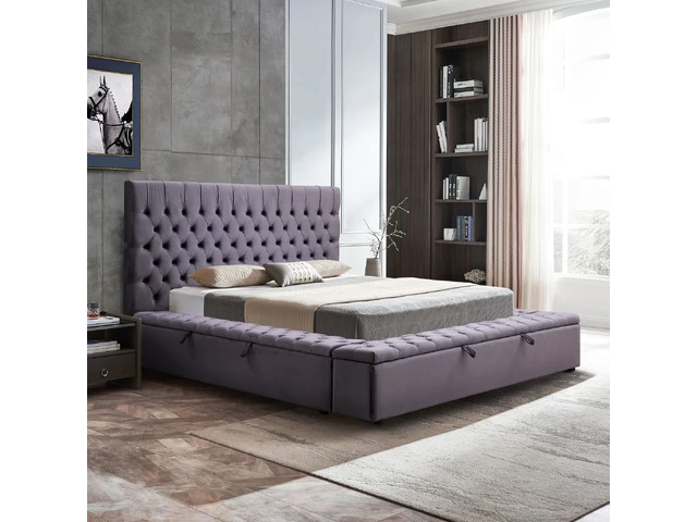 King Size Bedframe Velvet Upholstery Dark Grey Colour Tufted Headboard Deep Quilting in Brisbane, Queensland