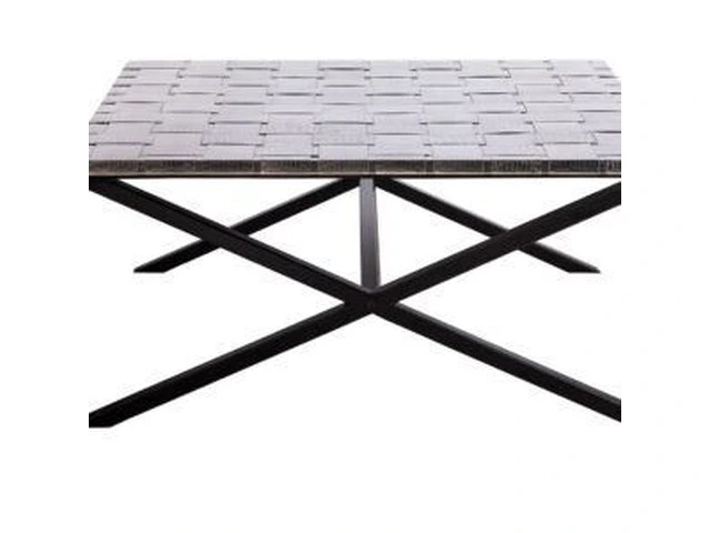 This stunning Large Square Black Coffee Table with Stainless Steel Woven Top is perfect for the Living Room and will surely enhance its aura. An enormous structure, boasting a 1 metre x 1 metre surface, will provide great sturdiness. Surface manufactured using 100% Stainless Steel and Legs with 100% Wrought Iron, this Table provides the upmost quality. This Table has been skilfully crafted with a woven design and finished with a Croc Pattern surface for amazing appeal.