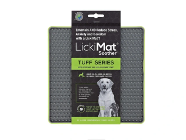 LickiMat Tuff Soother is the best boredom buster for cats and dogs. It is an innovative and fun alternative to slow feeder bowls and an excellent way to keep your pet busy, calm, and entertained for hours. It is the perfect to serve pet treats, yogurt, purees, peanut butter, spreads, raw food, liquid food, dry food, or your pet’s favourite snacks!
