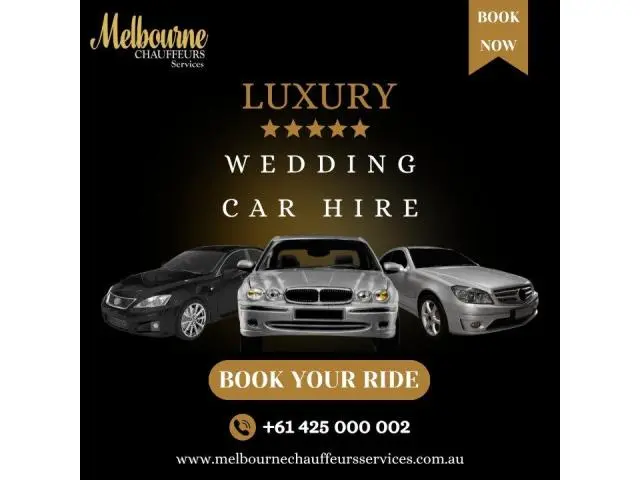 Make your big day unforgettable with Melbourne Chauffeurs Services’ premium wedding car hire. We offer a fleet of luxury vehicles, professional chauffeurs, and a seamless experience tailored to your schedule. Whether you need elegant bridal transport, groom arrival cars, or full-day chauffeured support, we ensure comfort, style, and reliability.
