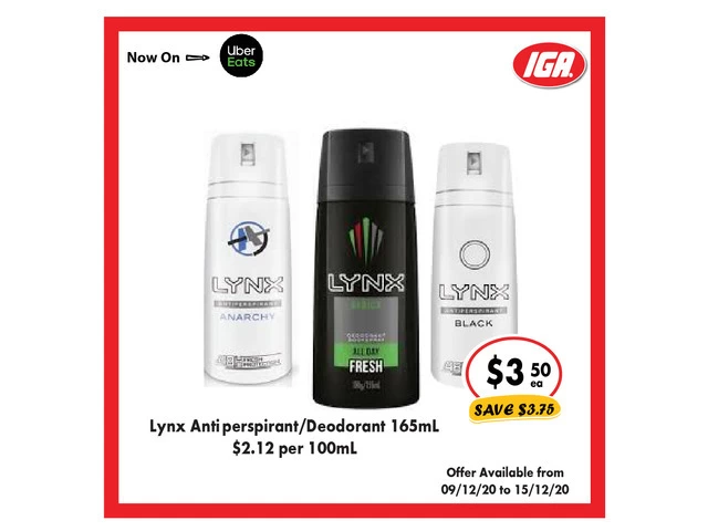 Lynx Anti perspirant/Deodorant From IGA Ravenswood in Launceston, Tasmania