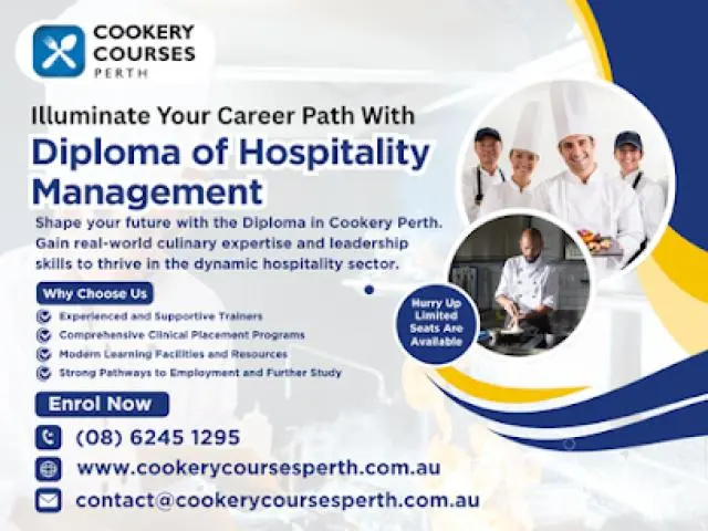 Success in the hospitality world begins with solid training in both business and culinary disciplines. Our course delivers hands-on experience while helping students navigate real-time decision-making. The comprehensive diploma of hospitality management we offer empowers students with team leadership, budgeting, and service quality expertise. As an added advantage, our practical chef courses Perth give learners the skills to perform confidently in commercial kitchens and upscale dining environments throughout Australia and beyond.